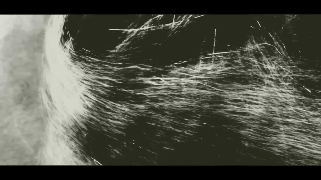 La abstracción, por su parte, emerge tanto desde procedimientos digitales como desde la manipulación del sonido y la imagen. Texturas generadas por algoritmos, distorsiones y loops que construyen superficies inestables que desbordan la representación figurativa. En este paisaje, el sonido —particularmente el zumbido insistente de máquinas de afeitar— adquiere una dimensión escultórica, marcando ritmos, cortes y fricciones..