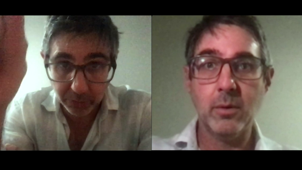 En algunas piezas, el cuerpo aparece mediado por la interfaz —como la cámara web— produciendo un efecto de desdoblamiento que remite a una subjetividad escindida, en constante negociación con su propia imagen. Este “doble” digital, inestable y reiterativo, evoca a la circulación de las imágenes pobres. A su vez, estas duplicaciones tensionan la noción de identidad, abriendo paso a formas de autoinscripción cercanas a la bitácora, al registro íntimo y discontinuo de una vida atravesada por flujos tecnológicos.
